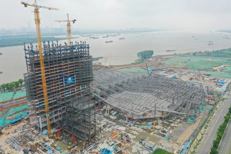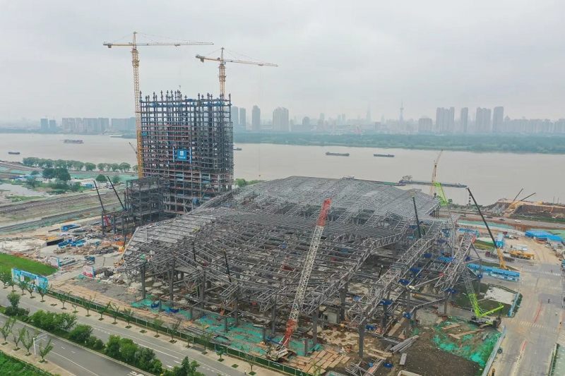 19年6月28日开工起土 支护桩施工完成 工程桩施工完成 块底板混凝土浇筑成功 地下室钢结构首吊 地下室正负零封顶 地上钢结构首吊 屋面榀桁架吊装 两厅屋面主桁架吊装完成 …… 年6月28日 扬子江国际会议中心 迎来“一岁生日” 在领导的关怀指导下 在媒体的关注关心下 在建设者的日夜奋战下 它从无到有,茁壮成长 项目概览 扬子江国际会议中心建设项目位于滨江大道与广西梗大街交叉口,按照世界标准设计,建成后将承接国际会议、高端商务论坛等活动,对南京市进一步完善国际化功能,提高国际影响力,争创国家中心城市,提升区域竞争力和首位度,提升江北新区城市功能品质具有十分重要的意义。
