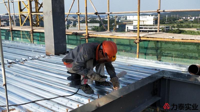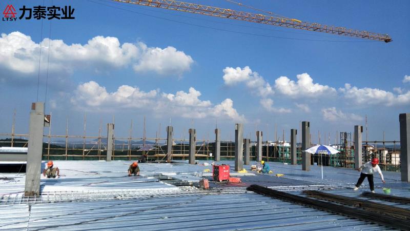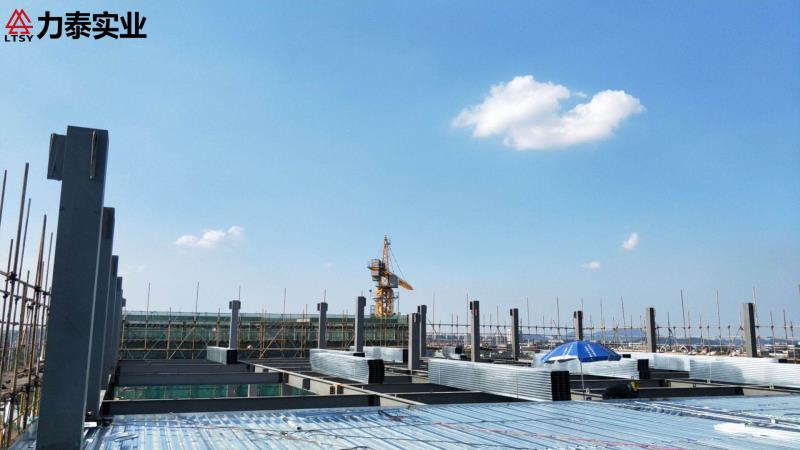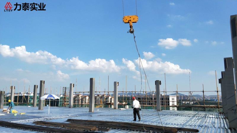 夏日炎炎,力泰工人们汗流浃背的作业着金马路工程十号楼十二层的楼层板铺装