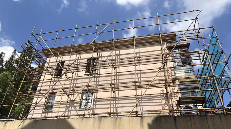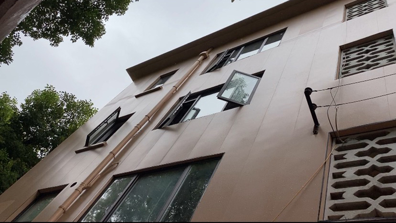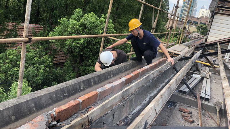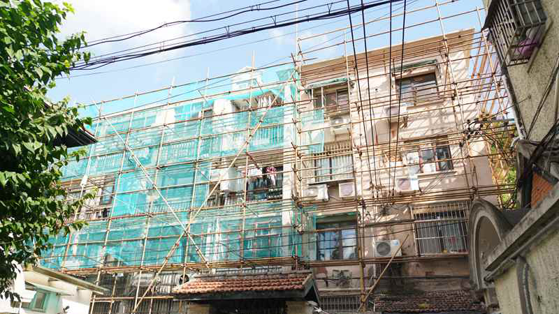 上海延安饭店外墙 常年经受自然界冻融循环的影响,随着时间的延长。墙皮脱落,内墙渗水,外观老化陈旧。